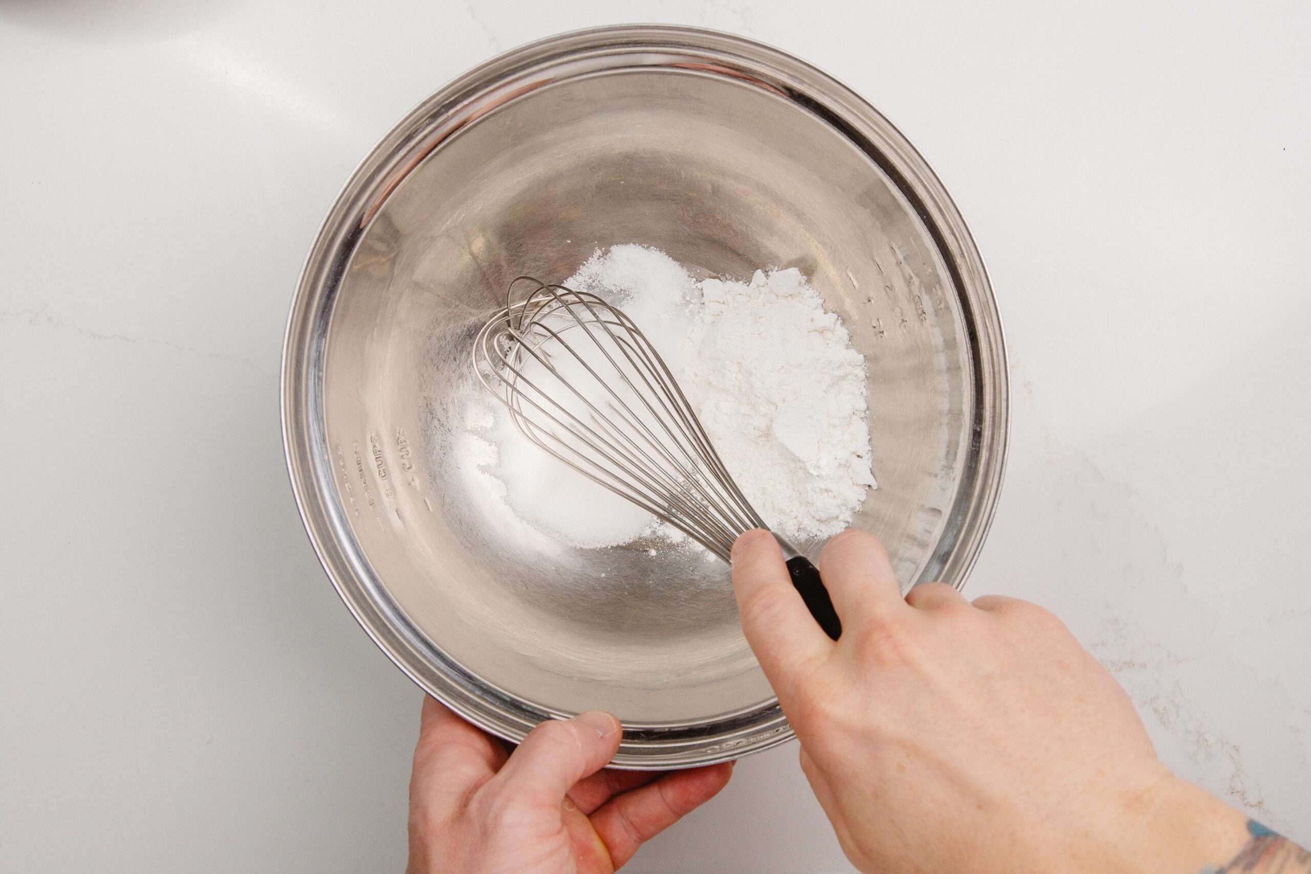 Preheat your oven to 350°F/176°C. (Pie Shell at 400ºF/ 204ºC) Combine your sugar, flour and salt in a metal bowl and gently whisk.