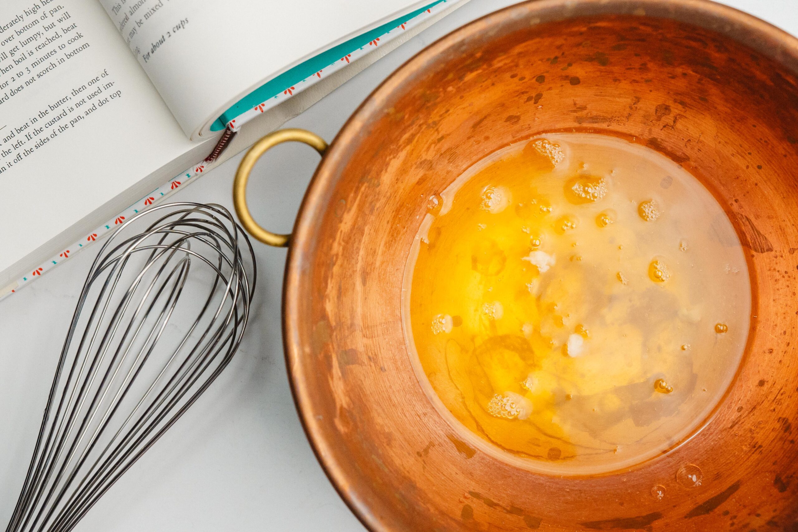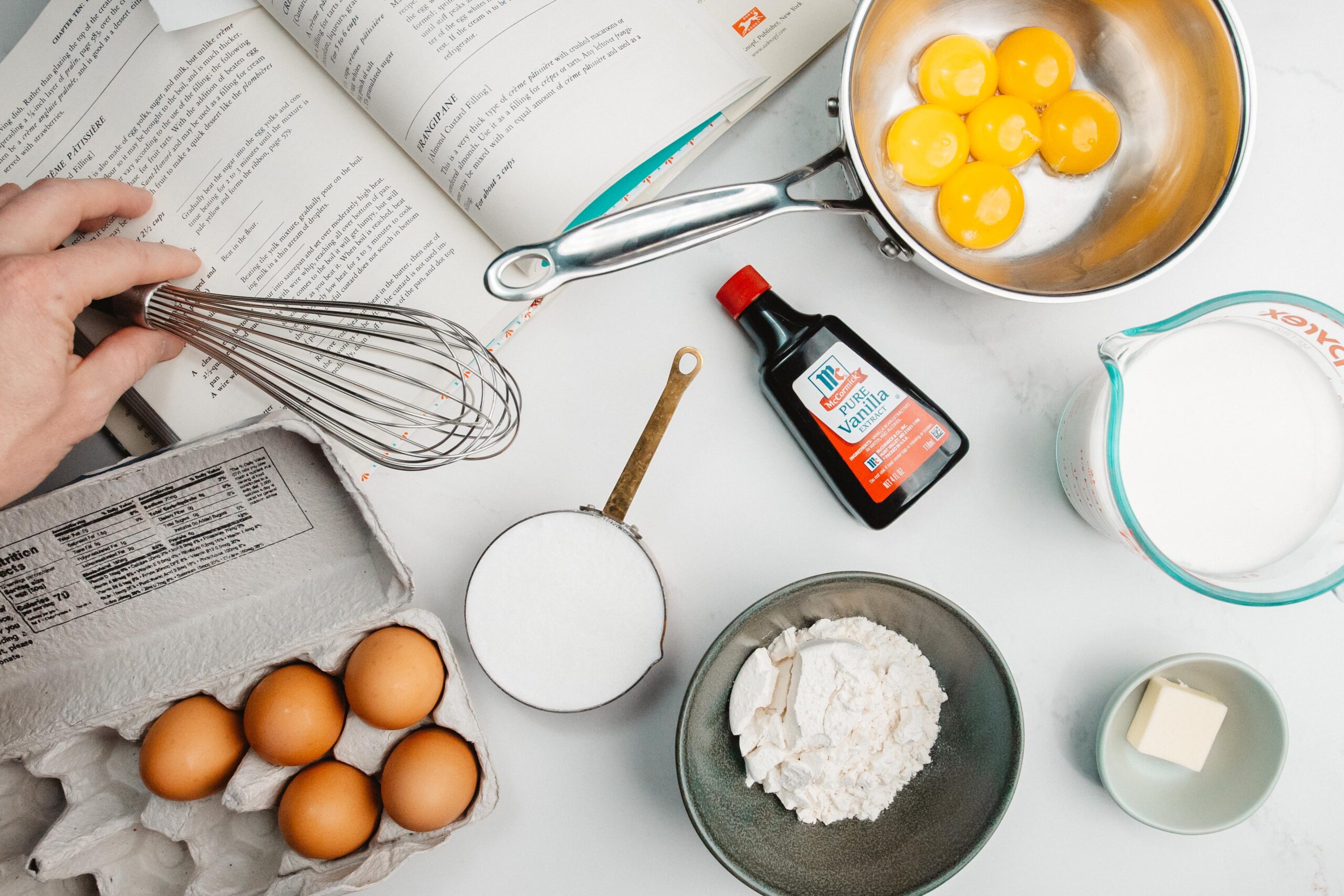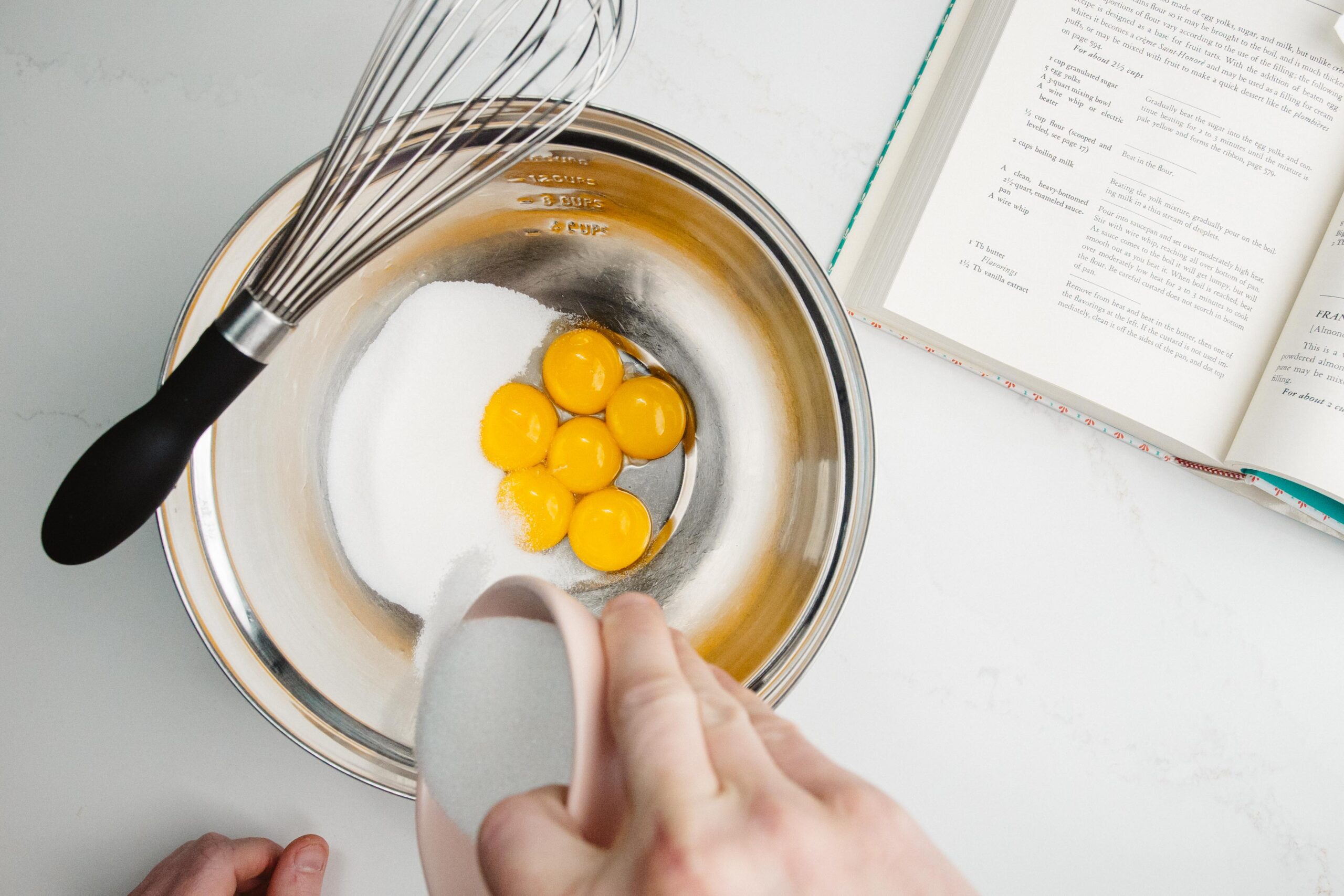 Begin by separating your eggs, reserving the yolks for this recipe.
