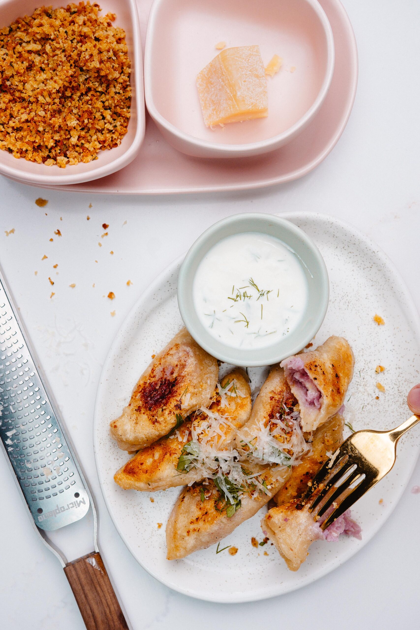 Introducing (to me at least), the Pierogi, stuffed with red cabbage and cottage cheese! This tender, fluffy and incredibly flavorful dumpling might be even better than a potato Pierogi, with the brightness of the cottage cheese and the perfectly cooked and processed head of red cabbage for a texture I loved. It’s served with toasted bread crumbs, which offered this buttery crunch that I was addicted to, and for good measure, I also made a dill sour cream sauce because a Classic never goes out of style.