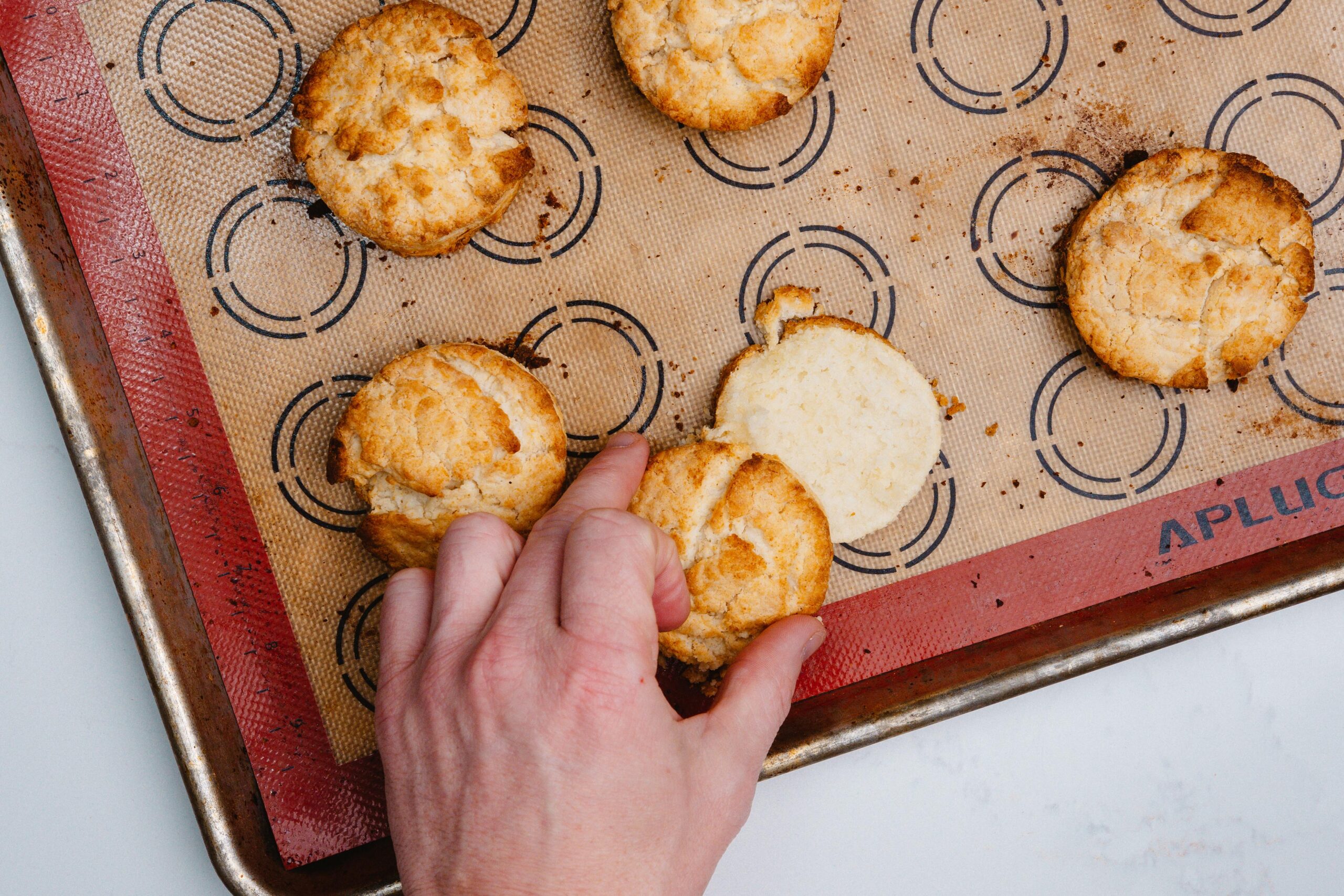 Remove the Shortcakes from the oven and allow to cool for a few minutes before carefully cutting in half with a serrated knife.