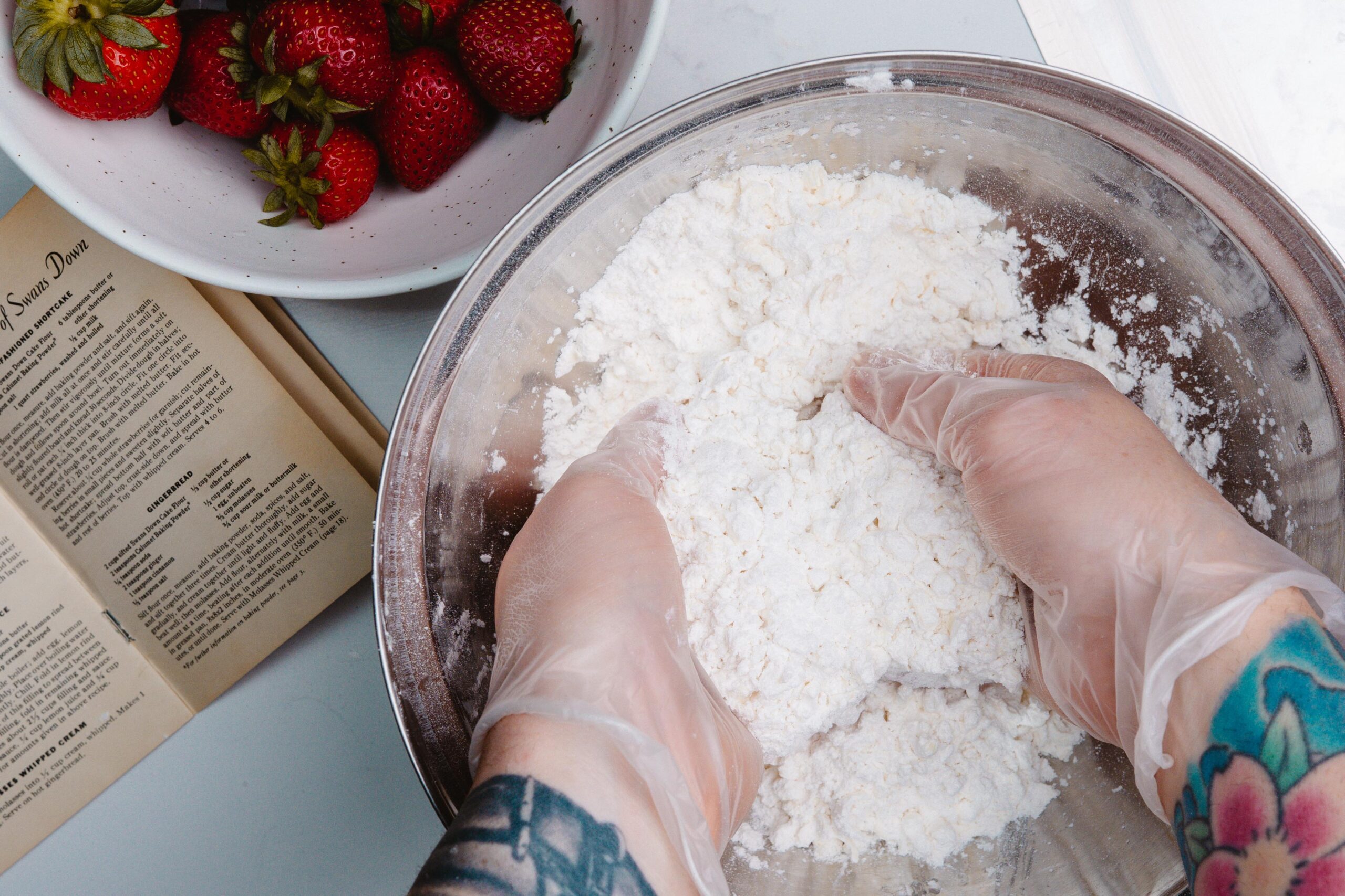 • Generally, you want to use an All-Purpose flour (11% protein), as it will hold nicely while forming the shortcakes. I used Swans Down flour (8% protein) and it yielded similar results with a slightly lighter shortcake.
